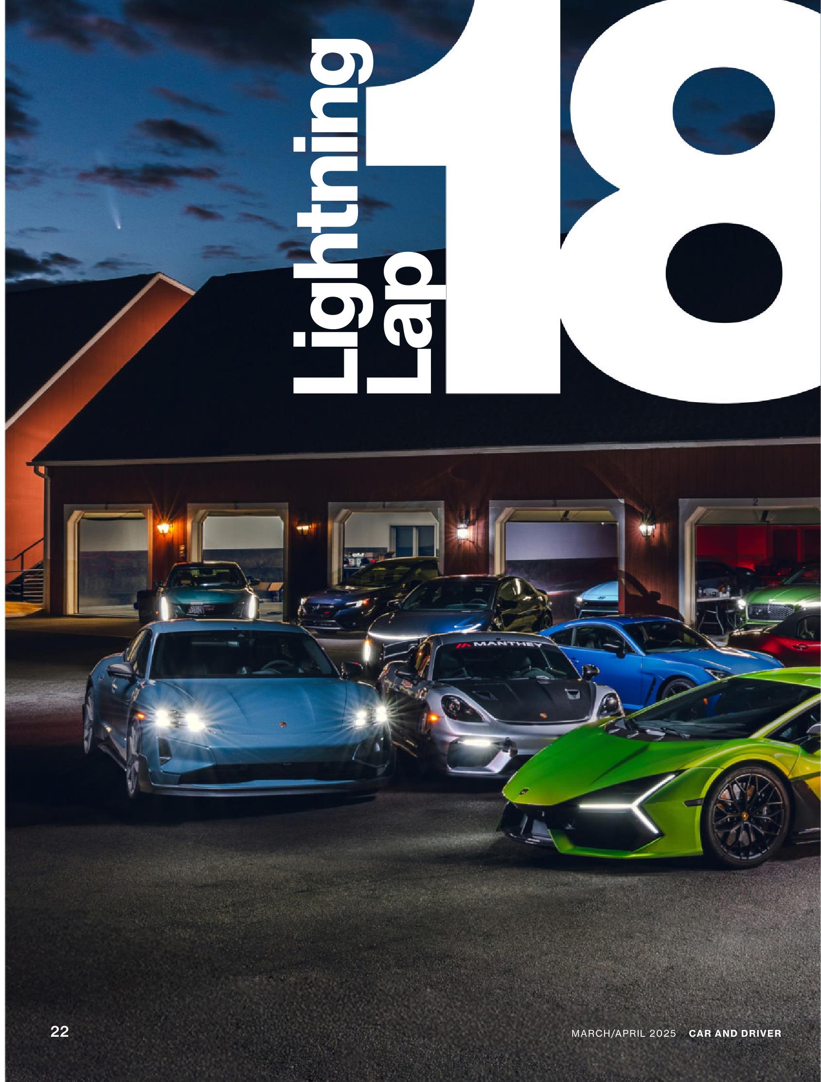Porsche-992 Carrera S Mk I vs AM DBS, Bentley Conti GT, BMW M2 & 850, Dodge Challenger SRT, Ford Mustang, Jaguar XE, Lambo Urus, McLaren Senna, AMG GT 63S, Toyota GR Supra (Motor Trend mag., 12/2019)