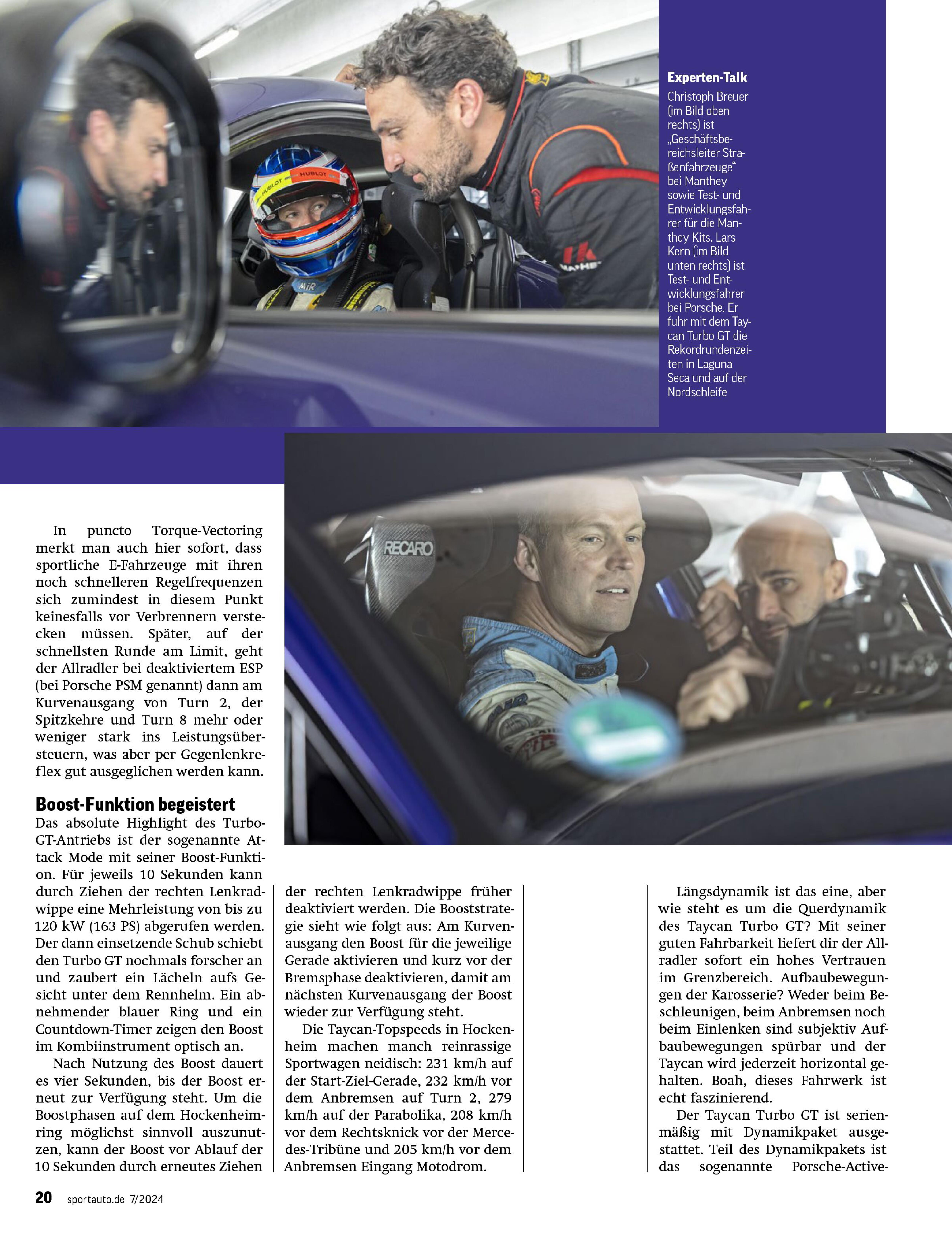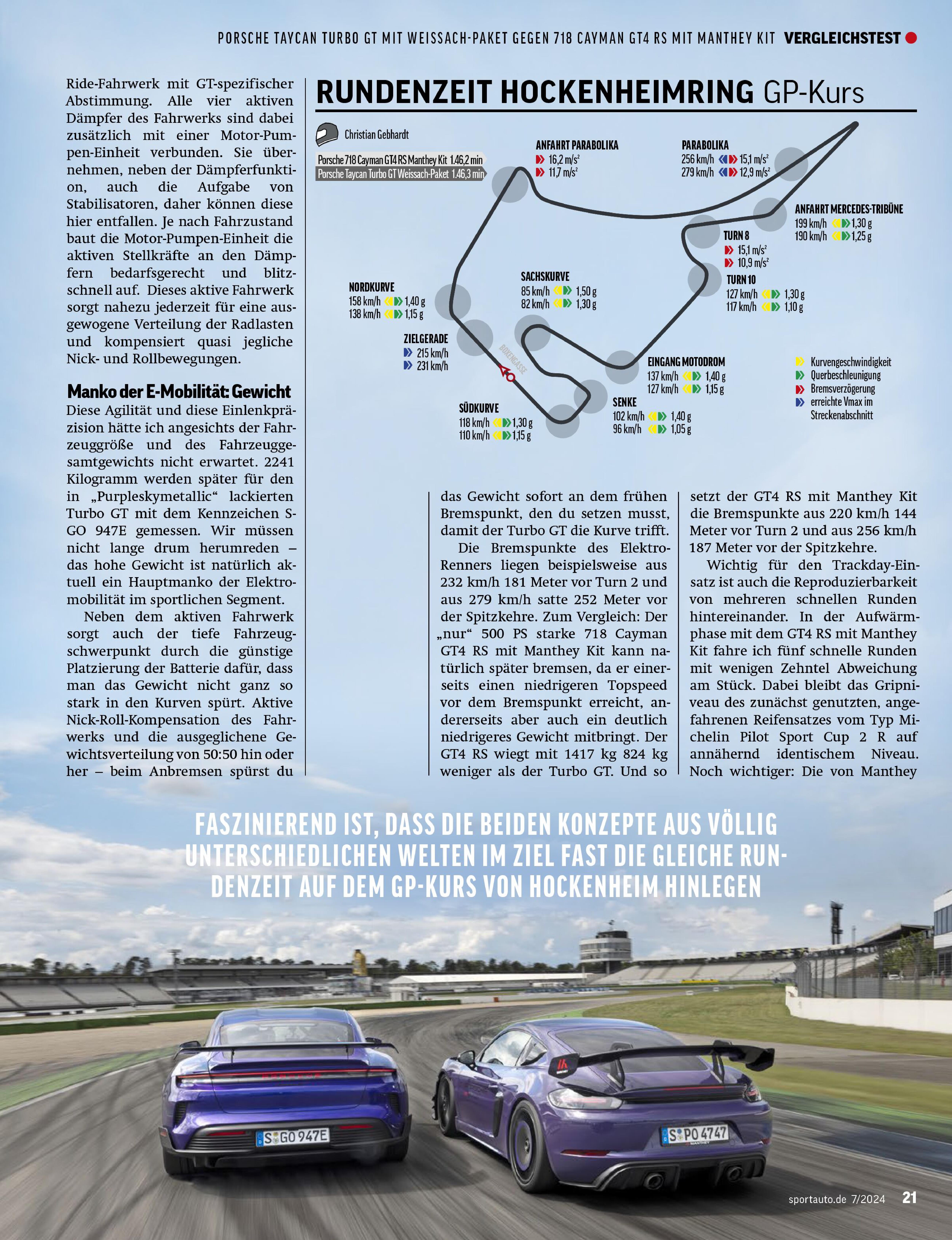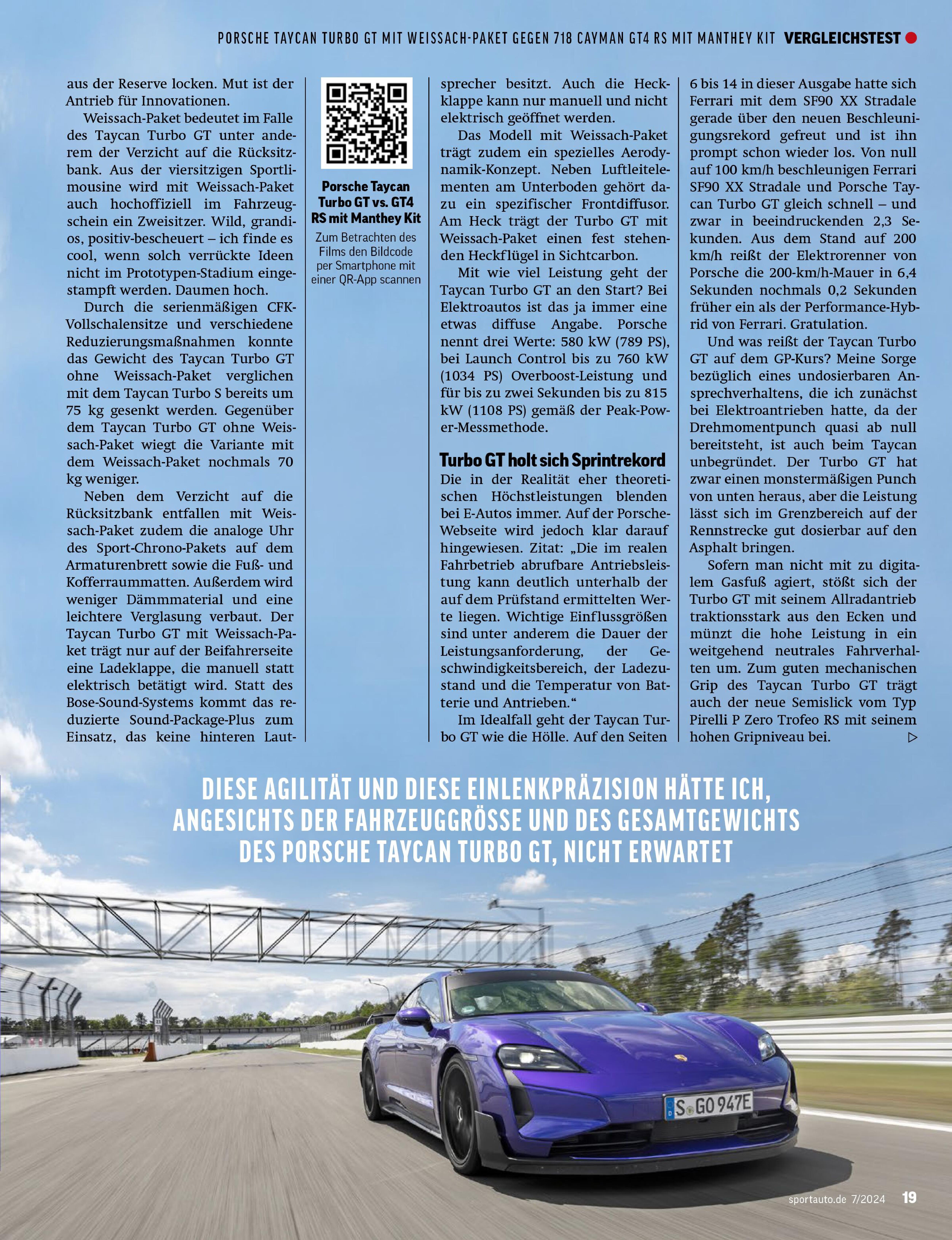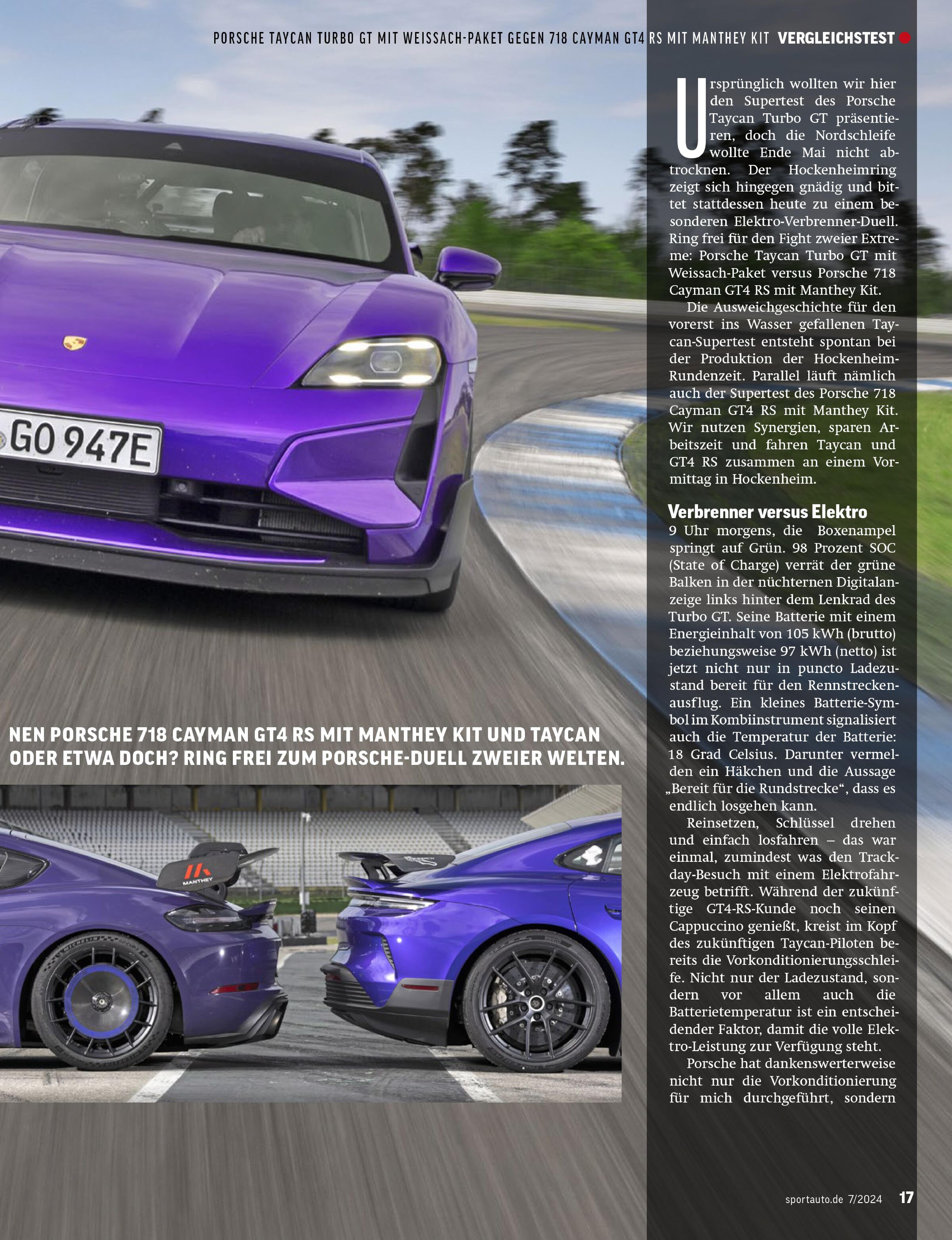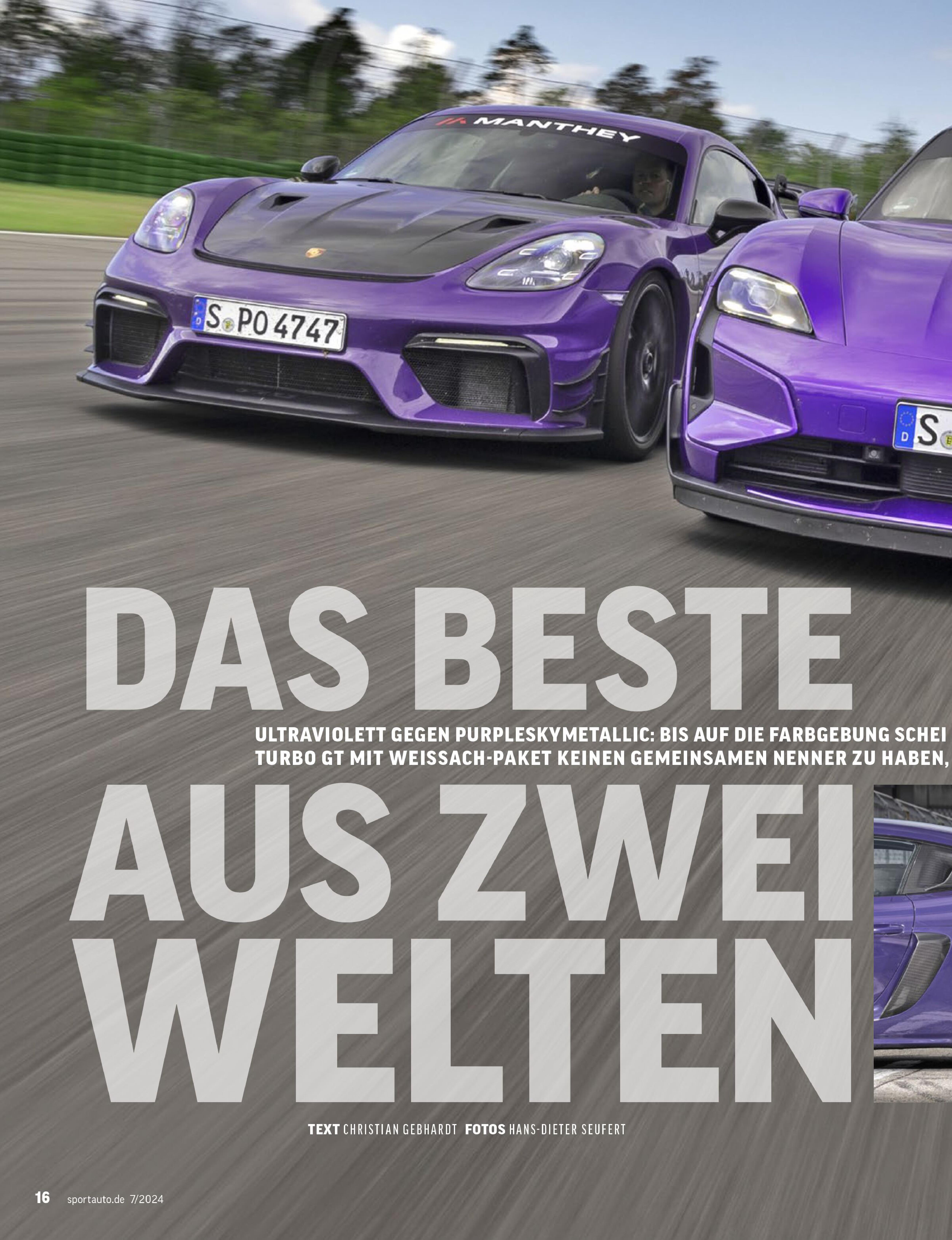 Porsche-982 Cayman GT4 RS & Taycan Turbo GT (Sport Auto mag., 07/2024, Deutsch) 19.12.2025 18 Porsche 982